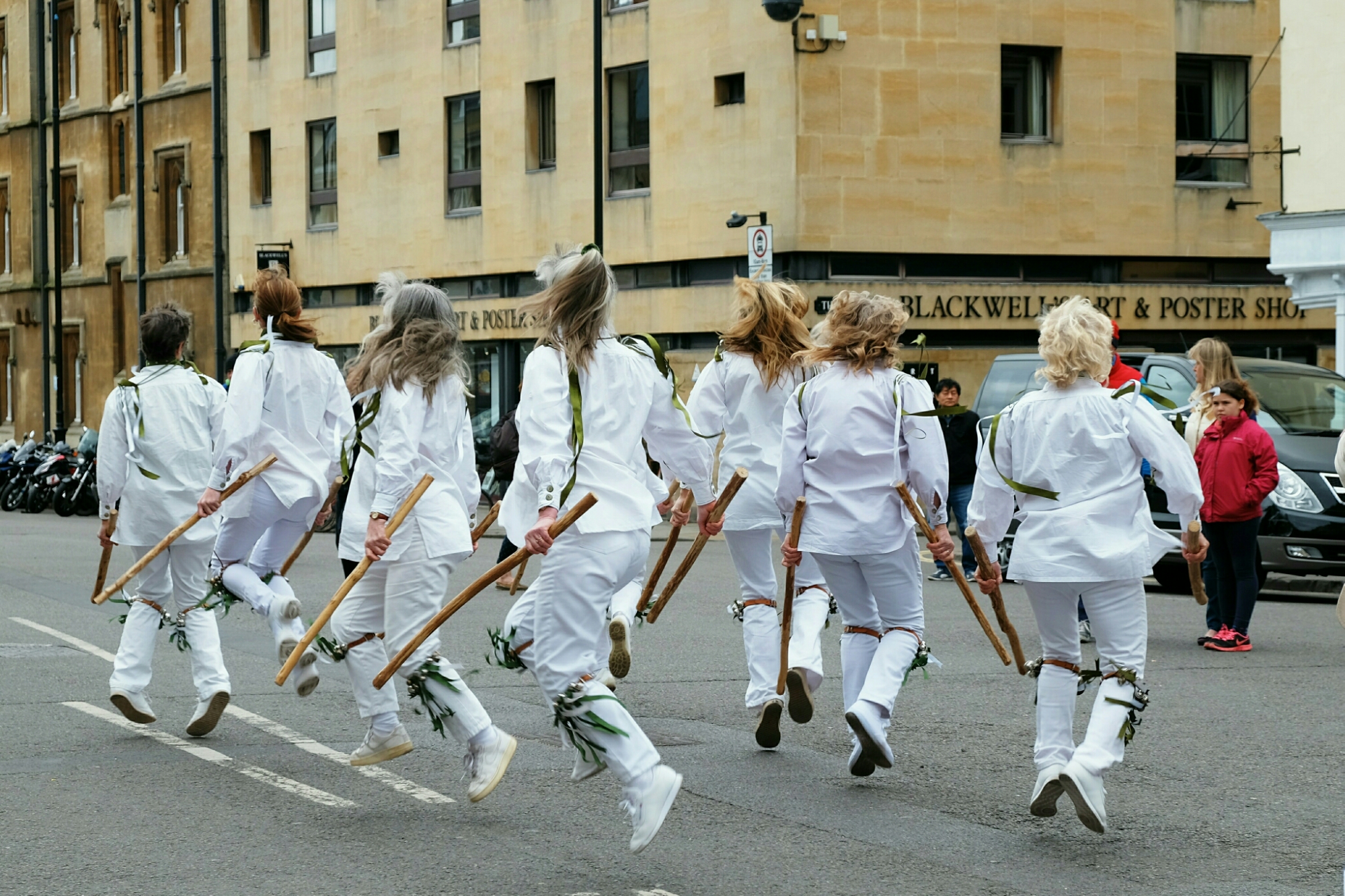 This weekend was a Morris dance gala. Many groups in colourful costumes danced in the streets. Thankfully, I was little influenced by the ones wearing brown and orange streamers for fur with their faces painted like lions, but there was a group that like Lipizzan horses mastered Airs Above the Ground. Either that, or given the broom-like sticks they were holding, his was the local Quidditch team in practice. Harry Potter’s Quidditch is now played in Canadian universities and teams are popping up everywhere in North America. I have my suspicions that they don’t play it in the air though. I’d be wise to let them know about this team.