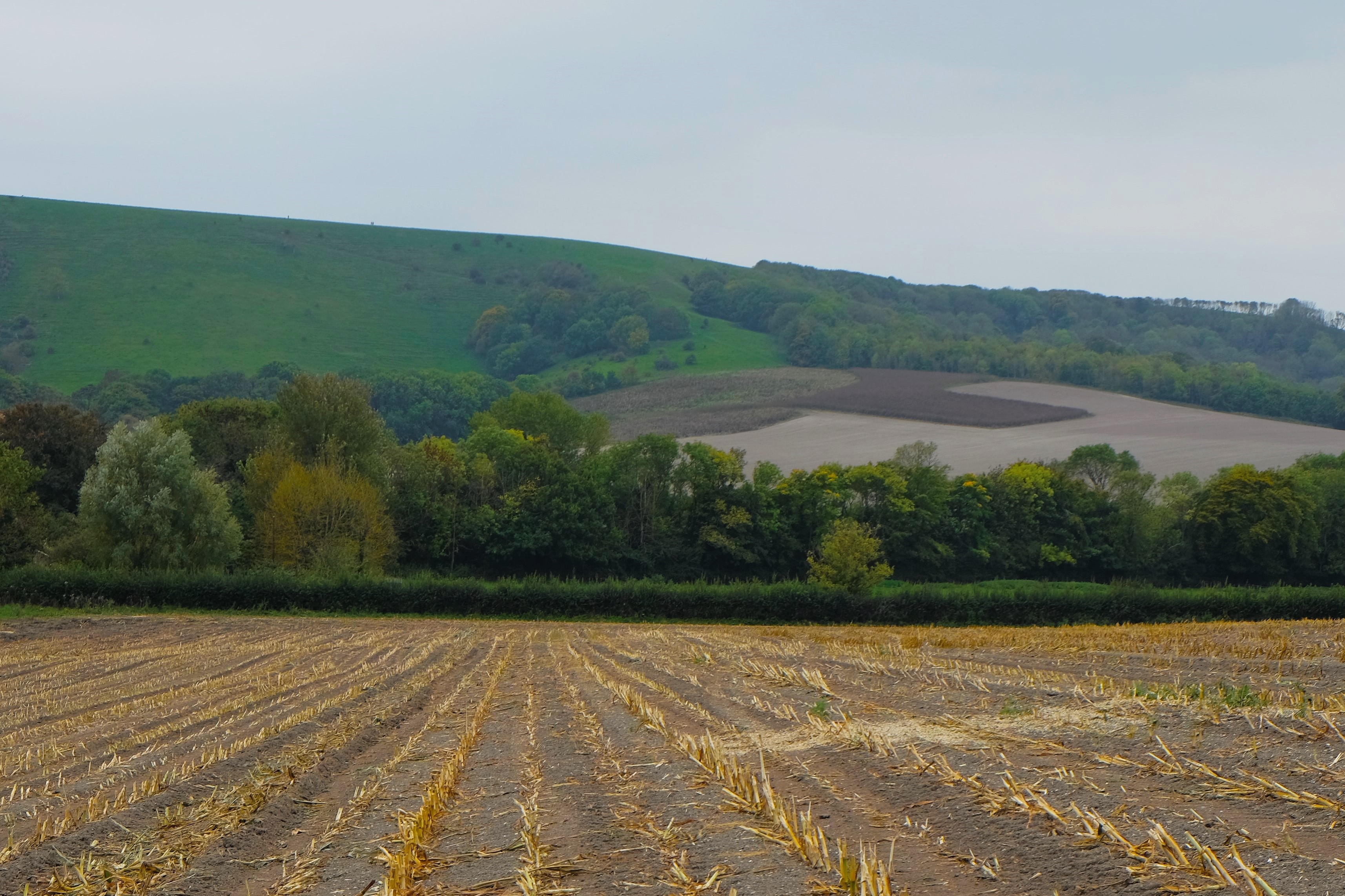 We were on pavement when we started up the South Downs, a lovely series of rolling chalk hills south of London. Paths and trails on the Downs have been used for 8000 years. Although a brisk 12°C and overcast, it sounded manageable and I needed the practice for an upcoming bike trip in Albania. Taking the road to the top is cheating I understand but it suited me well; I think the cross country route was meant for goats. The pavement was short lived, however, and once on top a glance at the trees told me this would not be easy.